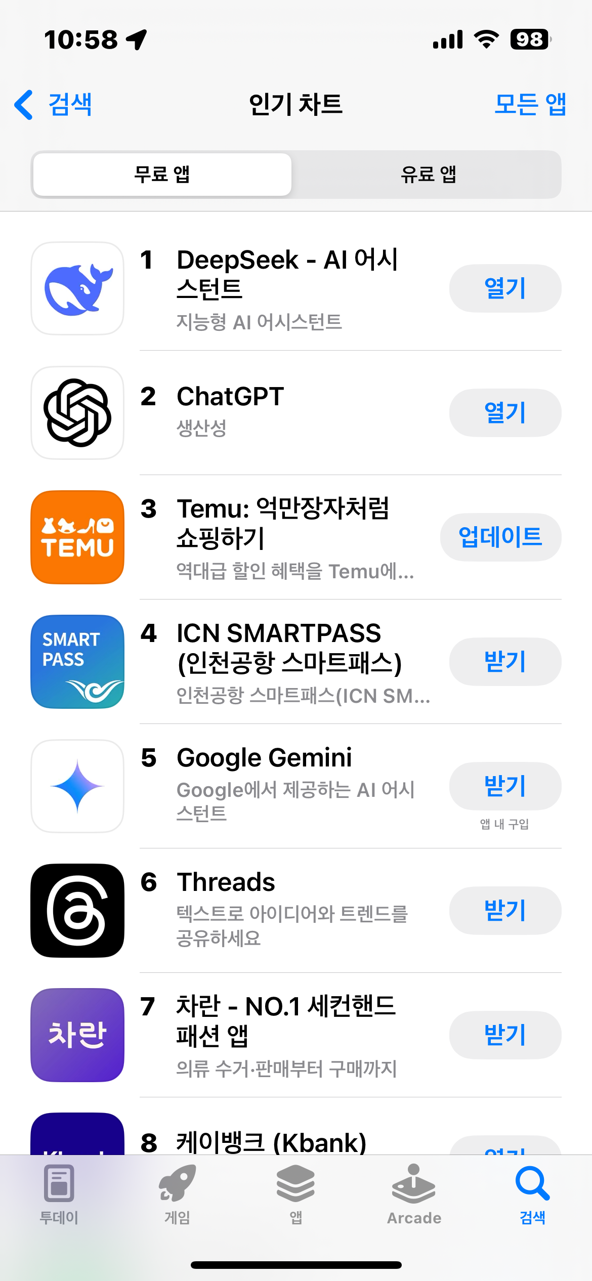 - Chat gpt를 제치고 1위를 달리는 딥시크 어플을 설치하는 링크입니다.