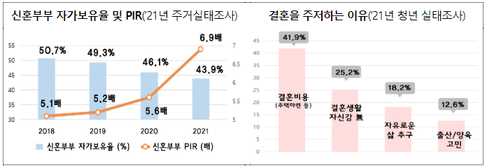 주택마련비용이 결혼을 주저하는 이유로 작용하고 있음을 알 수 있습니다.