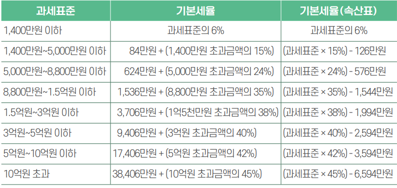 종합과세표준 금액에 따라 세율 부과 밴드가 확정되고 세금이 계산됩니다. 적용세율을 아래 도표와 같습니다.