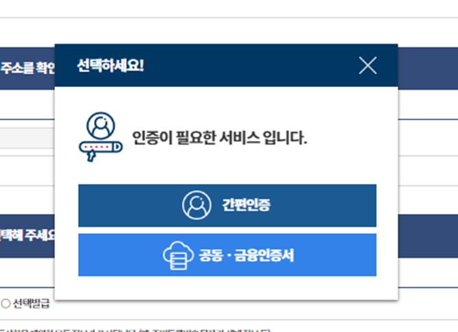금융인증서를 선택하시면, 인증서 비밀번호를 키인 하는 창이 뜹니다.