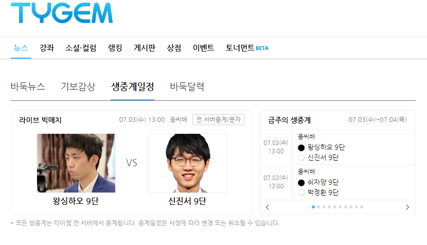 3. 대국 생중계보기