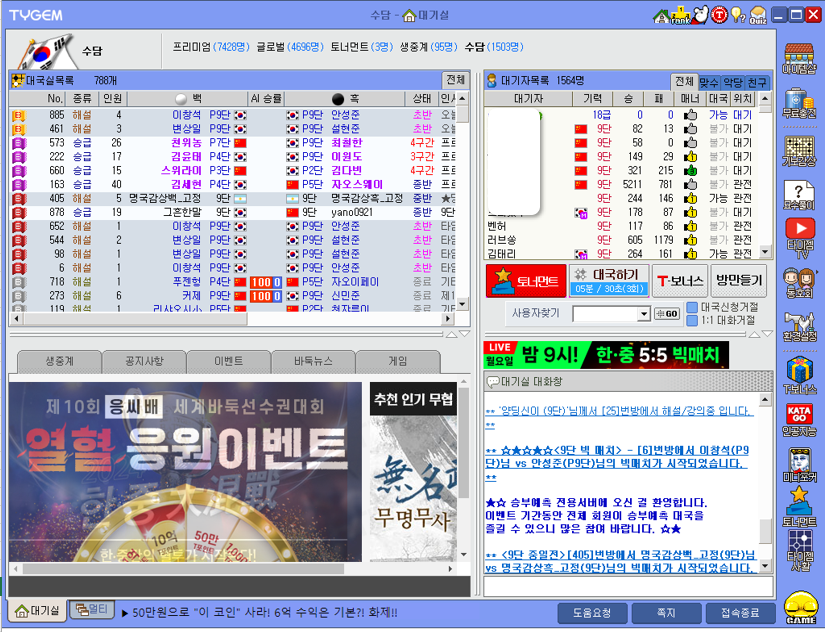 인터넷 바둑 사이트로 널리 알려진 타이젬바둑에 대하여 알아보겠습니다.