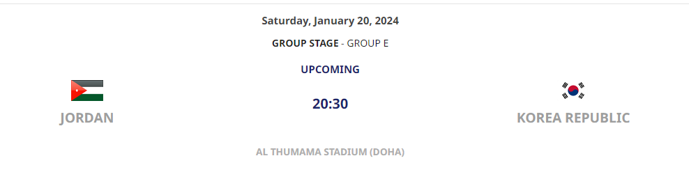 - 2차전 (1월 20일, 현지시간 14:30시, 한국시간 20:30시) : 대한민국 - 요르단