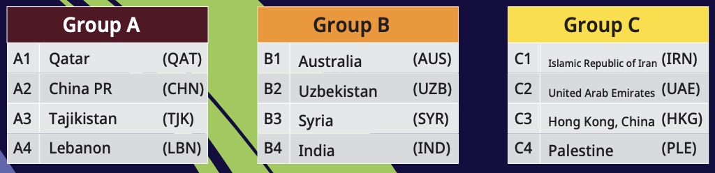 - 조편성 : 4개국 1조, 총 A, B, C, D, E, F 6개 조 편성