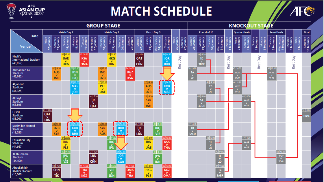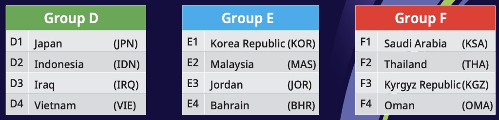 - 대한민국은 말레이시아, 요르단, 바레인과 같이 E조에 편성