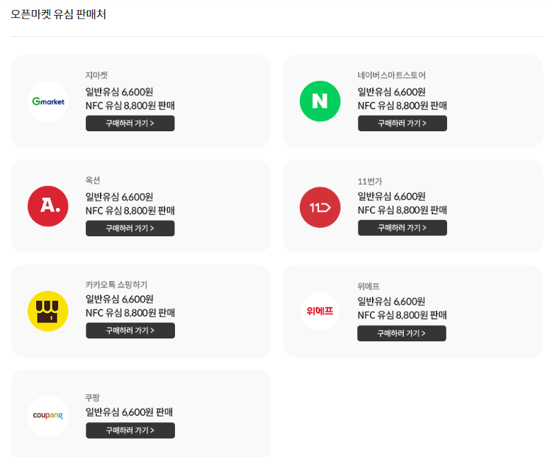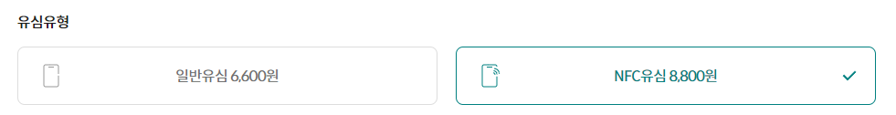 가격은 일반유심이 6,600원, NFC유심이 8,800원으로 LTE폰 이상급에서는 NFC유심을 구매하시는 것이 교통카드등의 사용에 편리하겠습니다.